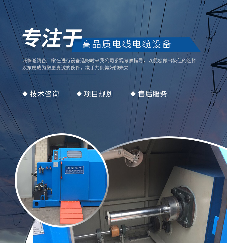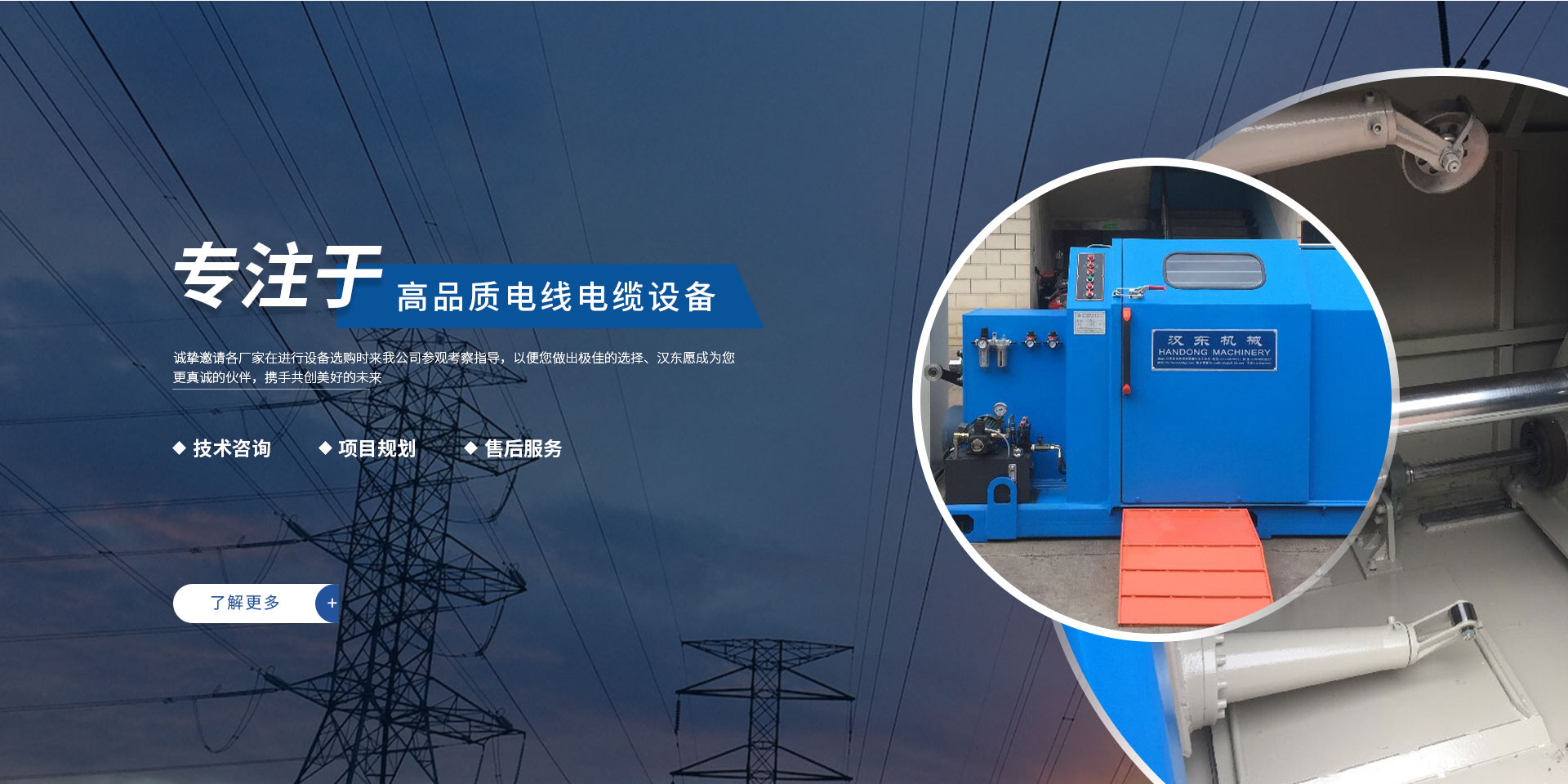 常州漢東機(jī)械始創(chuàng)于2006年,是集電線電纜機(jī)械設(shè)計(jì)、開發(fā)、制造、安裝、調(diào)試為一體化的高科技企業(yè)。本公司自開業(yè)以來,積極引進(jìn)日本,歐美等國(guó)外電線電纜設(shè)備之先進(jìn)技術(shù),先后成功推出了達(dá)到行業(yè)先進(jìn)水平的電線電纜設(shè)備,主要產(chǎn)品有擠出、繞包、束線、成纜等電線電纜固定設(shè)備。在提供系統(tǒng)設(shè)備的同時(shí),還向客戶提供售前技術(shù)咨詢、項(xiàng)目規(guī)劃、以及售后服務(wù)。我公司本著“以人為本、科技先導(dǎo)、用戶為上”的宗旨,為客戶提供牢靠的產(chǎn)品與省心的服務(wù)。漢東愿成為您更真誠(chéng)的伙伴,攜手共創(chuàng)美好的未來!